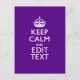 Your personalised Keep Calm saying on a fine custom deep purple colour style decor. A personalised Keep Calm style saying on a one of a kind gift. Humourous or whimsical try on your creative words on two editable lines of text. Remember to use CAPITAL letters for best results.