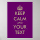 Purple keep calm poster template | Customisable text on dark background. Faux golden letters. Keep calm and carry on design spoof. Keep calm and rock on. Keep calm and dance on.