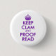 Purple Keep Clam and Proof Read 3 Cm Round Badge