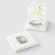 The coasters are gorgeous, a quality feel and heavy weight. They look like a precious archeological find. A rustic stone juxtaposed with a modern floral black and white print. I like the way the print goes slightly imperfect on the cut stone edges giving them a kind-of natural beauty.