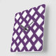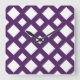 A bold, geometric pattern of large and small white diamonds on a purple background. The purple forms a lattice which separates the white diamond shapes.