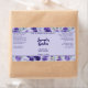 A product label for cosmetic bottles featuring a background with lavender flowers. This label contains space for your product name, business name, product weight, ingredients, instructions, social media, and business address. This label measures 3.75 inches by 2 inches (95 mm by 51 mm) and is suitable for bottles with a diameter of 1.2 inches (31 mm) or more such as 2 (60 ml) to 4 oz (120 ml) bullet, cylinder, and boston round bottles. It can also be used for cosmetic jars and other types of cosmetics packaging.