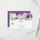 Bouquets of Watercolor flowers in shades of purple and lavender with greenery RSVPs. The back of the card is purple. Matching wedding invitation available.