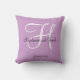 Personalised purple Wedding keepsake pillow, Black and White monogrammed pillow with bride and groom names and wedding date in decorative script.Solid tan coloured background. Makes a great gift for newly weds. Elegant,trendy, accessory for your bedroom, favourite chair,or any room in your families home. Customise with your names, monogram initial and wedding date. Available in 100's of colours monogram, letters, initials, elegant, monogrammed, wedding, names, "bride and groom", wedding, chic, "wedding keepsake", home decor, trendy, white, grey, pillows
