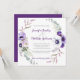 These invitations are both elegant and rustic. Purple, lavender, and white watercolor floral border on either side of a square invitation. The text boxes are easy to personalise using a mix of calligraphy and modern fonts.