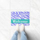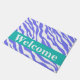 Welcome visitors to your home with this stylish and sophisticated periwinkle purple lavender and white zebra skin pattern door mat. This door mat is customised with the word Welcome that you can change to another word or name. A turquoise teal blue strip gives an area for personalisation and an additional pop of colour. Enjoy this popular and contemporary design that will add a trendy home decorative accent. This design is available in several colour combinations in this store.