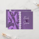 The front axle and wheel of a motorcycle in shades of purple make up the left edge on the front of this wedding invitation perfect for biker couples. The right edge has the appearance of purple leather. A single row of daisies separates the two halves. A row of the same flowers decorate the back of the invitation. All customisable text can easily be changed to suit your own needs.