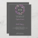 Purple Leaves Monogrammed Wreath Dark Grey Wedding Invitation