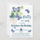 Purple lilac & blue butterfly themed 9th birthday invitation