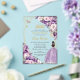 Personalize this elegant floral Quinceañera / Sweet 16 birthday acrylic invitation easily and quickly. Simply click the customize it further button to edit the texts, change fonts and fonts colors. Featuring exquisite purple, lilac, light pink, blush roses, a girl in a lilac dress, butterflies and chic gold accents. Explore matching items available in-store to create cohesive stylish celebration! (c) Somerset Fine Paperie