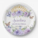 Purple Lilac Floral Quinceañera Crown Butterflies Paper Plate