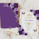 The perfect invitation for your daughter's quinceañera is finally here! This chic and lovely quinceañera invitation features elegant watercolor purple & lilac flowers, a sparkly gold glitter tiara and two fluttering butterflies. Click the "customise further" button if you wish to re-arrange and format the style and placement of the text.