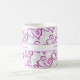 This fun design features two linked heart patterns. The top larger pattern purple heart and behind are linked black outlined hearts with template text on both sides of the handle. Personalise the text or click customise to select a font style, size, and colour you prefer. Select from a variety of mug styles to fit your taste.