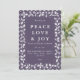 Purple Lino Print Holly+Berries Border Flat Holiday Card