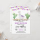 Add a playful twist to your celebration with this adorable Purple Llama Baby Shower Invitation. Featuring a cute llama surrounded by desert cactus, soft florals, and a whimsical purple fiesta banner, this invitation sets the tone for a cheerful and colourful baby shower with a fun southwestern flair. Whether you're planning a llama fiesta or a cactus garden party, this invitation is the perfect way to invite guests to celebrate your little one in style! BBS142