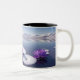 Purple Lotus flowers on a winter lake. Two-Tone Coffee Mug