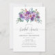 Purple flowers in a hand painted bouquet bridal shower invitation designed to be quickly and easily customised for your special day.