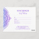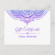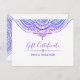 Elegant purple and blue ornate lace mandala design white background, customisable gift certificate postcard design.