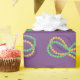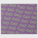 Gift wrap features an original marker illustration of strands of Mardi Gras beads, printed on a purple background.