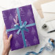 A pretty Christmas design for your holiday gift wrapping featuring Christmas trees with the saying "Merry Christmas" written in script over a distressed purple background.