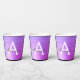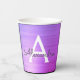 Purple Faux Metallic Elegant Monogram Birthday, Wedding, Bridal Shower or Bachelorette Party Cup. This Birthday Party Cup can be customised to include your initial and first name. Please contact the designer for customised matching items.