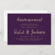 Modern minimalist wedding cancellation cards feature handwritten brushy script in purple and gold colour, simple and stylish.