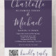 Purple Modern Elegant Script QR Code Wedding All In One Invitation