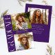 Purple Modern Elegant Vertical Three Photo Graduation Invitation features a fun and modern type, along with your graduation photo. Add your party or open house details to the back.