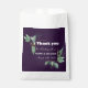 This stylish & elegant wedding favor bag features simple chic green and golden leaves on a deep purple background perfect for spring, summer, or fall weddings. Personalize with your event information. Can be used for your rustic weddings, bohemian bridal shower, elegant engagement party, modern baby shower, sophisticated graduation, outdoor birthday and more. Keep it simple as is, or add your own elements and text. The background can be changed to any color in the Zazzle design tool by clicking on the Customize button.