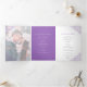 Purple hand-drawn growing leaf botanical art wedding program. Personalise this wedding trifold program with your own wedding ceremony details, party names, and photos. Simple purple leaf design circling your own monogram initials and on white and purple. Other colours and matching wedding items available. © Original leaf drawing and design by Sarah Trett for www.mylittleedenweddings.com on Zazzle.