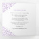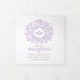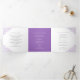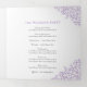 Purple, dark grey, and white mono hand-drawn growing leaf botanical art square-shaped wedding program with your own love story and remembrance sections. Personalise this wedding trifold program with your own wedding ceremony details, party names, love story, and dedications. Simple purple leaf design circling your own monogram initials and on white and purple. Other colours and matching wedding items available. © Original leaf drawing and design by Sarah Trett for www.mylittleedenweddings.com on Zazzle.