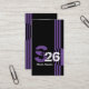 Purple monogram QR code abstract geometric business cards. It features geometric abstract circle and stripes and your monogram. On the back there is your QR code. Perfect for a photographer and other businesses.