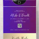 Simplistic, minimalist, modern, contemporary bold purple gold and black all-in-one wedding invitation with QR code, monogram with hand drawn love couple birds, trendy handwritten script and custom picture of the at the back.