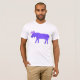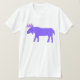 A purple cartoon moose strides regally across this apparel.