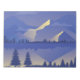 Purple landscape with silhouettes of mountains pine trees and lake