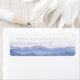 Return Address label with Morning mountain landscape. Softness blue Nature landscape. Silhouettes of mountains and dandelion flowers. Watercolor painting background Return Address label. Purple Mountains Collection.