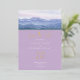 Wedding Save the Date with Morning mountain landscape. Softness blue Nature landscape. Silhouettes of mountains and dandelion flowers. Watercolor painting background Wedding Save the Date. Purple Mountains Collection.