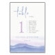 Table Card Number with Morning mountain landscape. Softness blue Nature landscape. Silhouettes of mountains and dandelion flowers. Watercolor painting background Table Card Number. Purple Mountains Collection.