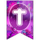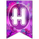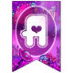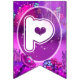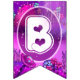 Joining the party theme is a party bunting banner with the letters "Happy Birthday" on each flag and purple mushrooms and plants in the background with the letters inside an oval. As part of the "Sweet Black Fairy Birthday" theme this is a cute design for girls on their special day of celebration.