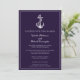 Celebrate your love with this Purple Nautical Anchor Wedding Invitation, a perfect choice for maritime theme weddings and coastal wedding stationery. This elegant invitation features a classic nautical anchor design, paired with wedding details and bride and groom names in a stylish blend of elegant script and modern typography. The simple layout exudes timeless sophistication, capturing the essence of a nautical wedding theme. Crafted with premium materials, this invitation invites guests to your special day with coastal charm and refined elegance.