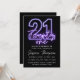 Purple Neon 21st Birthday Invitation