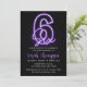 Purple Neon 6th Birthday Invitation