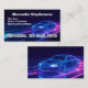 Cool retro blue and purple neon theme business card for a car driving service or limousine limo driver. Featuring a cool generative ai image of a sedan on the road at night. Let riders and customers know you are the rideshare service driver by wearing or displaying this cool gear on your person or car! Ridesharing is the big new eco way to travel by hailing a car through your smartphone and helping a fellow city dweller make money at the same time.