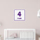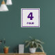 Purple number four on white background with purple border. Help your little one learn the numbers with this number four design.