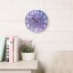 Photo of purple and blue ombre chunky, sequin or confetti glitter with bokeh blur and faux sparkle white white fat face numbers with a dark blue drop shadow on a custom wall clock for her.