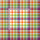 Fabric with a Plaidwerx original chequered plaid pattern in bright purple, orange, and lime green, with blue and white accents. Pattern repeats every 2". Special order larger scale via https://plaidwerx.com/contact.htm