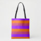 Vibrantly colourful purple, orange and pink stripes tote bag.