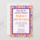 birthday party invitations for girls, girly birthday invites, purple birthday invitations, purple birthday party invitations, pattern birthday invitations, orange birthday invitations, bold, colourful