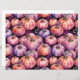 A unique Fall and Autumn pattern featuring purple and orange watercolor texture pumpkins on a dark background.