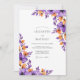 This design features a striking display of watercolor florals arranged along the edges. Rich purple anemones pair beautifully with bright orange blossoms and delicate green foliage. The vibrant color palette creates a cheerful and artistic mood, perfect for a lively seasonal affair. The clean white backdrop allows the hand-painted details to shine elegantly.